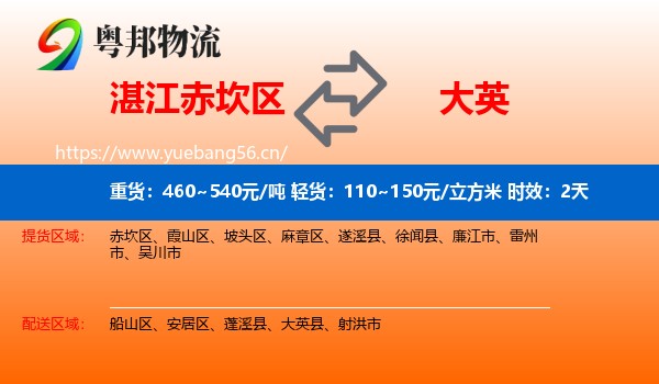 赤坎区到大英县物流专线概况